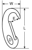 Artikelnummer Item Number | D mm | L mm | W mm | E mm | working Load kg | breaking Load kg | Pack box | Grosskarton master carton | Palette pallet |
